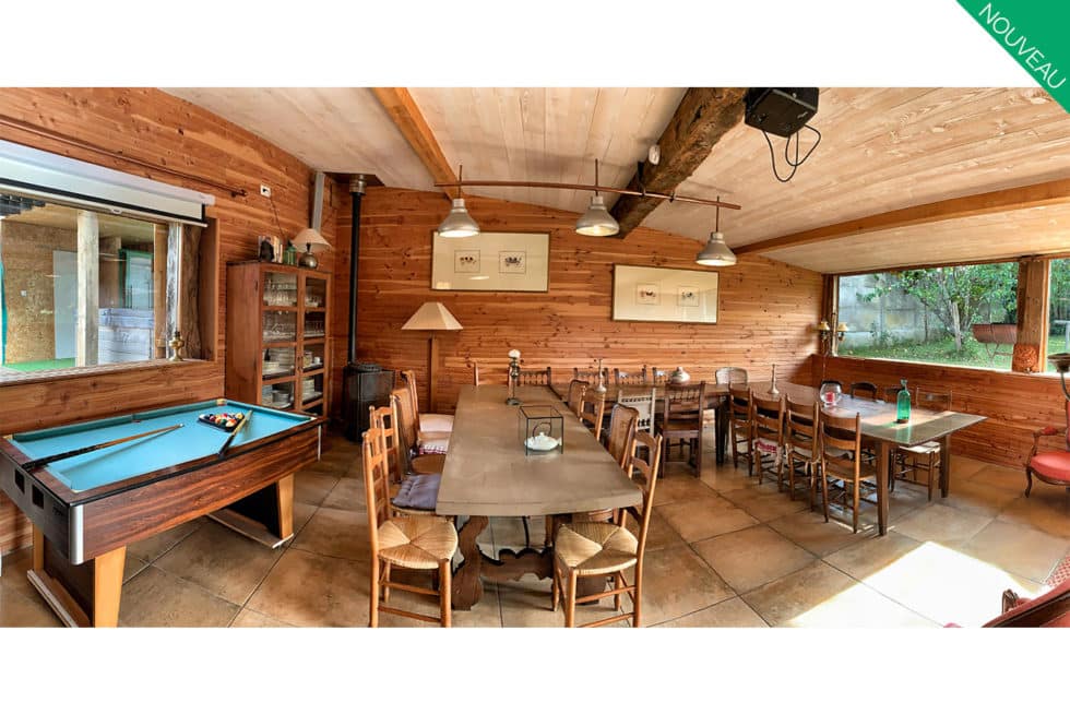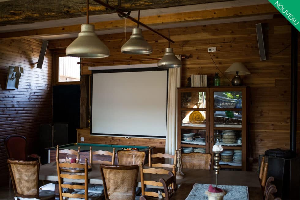 Une grande salle de 40m² aménagée pour dîner et danser, un vidéo projecteur, un snooker (billard) ainsi qu’un jardin fermé avec un barbecue GEANT sont également à votre disposition.